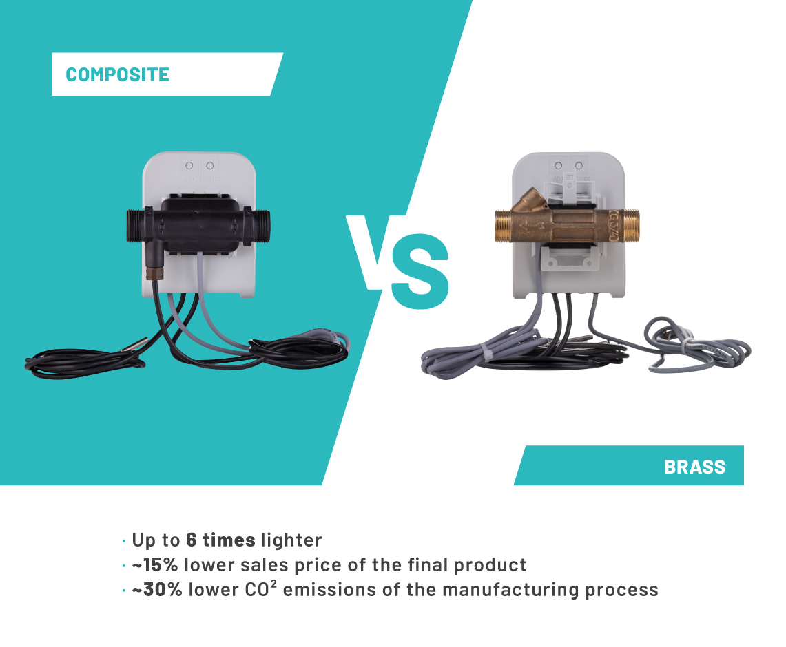 By producing our composite flow body parts in-house, we can offer shorter manufacturing and delivery times as well as a range of different product variations to meet the needs of our customers. And in addition to improving the strength characteristics of products, composite materials are not susceptible to fluctuating copper prices. By adding up the lightweight of the final product β we can ensure more competitive pricing for our customers who choose composite meters instead of brass.