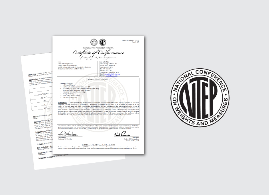 NTEP stands for National Type Evaluation Program, an approval system created by the U.S. Department of Commerce’s National Institute of Standard and Technology (NIST) and the National Conference on Weights and Measures (NCWM). NTEP approval is endorsed by most states as being the benchmark to allow a device to be used as a legal for trade point of precious resources. NTEP approval basically tells the market that the measurement device has proven itself to be reliable and accurate. This is vitally important when precious resources such as potable water are sold by volume.